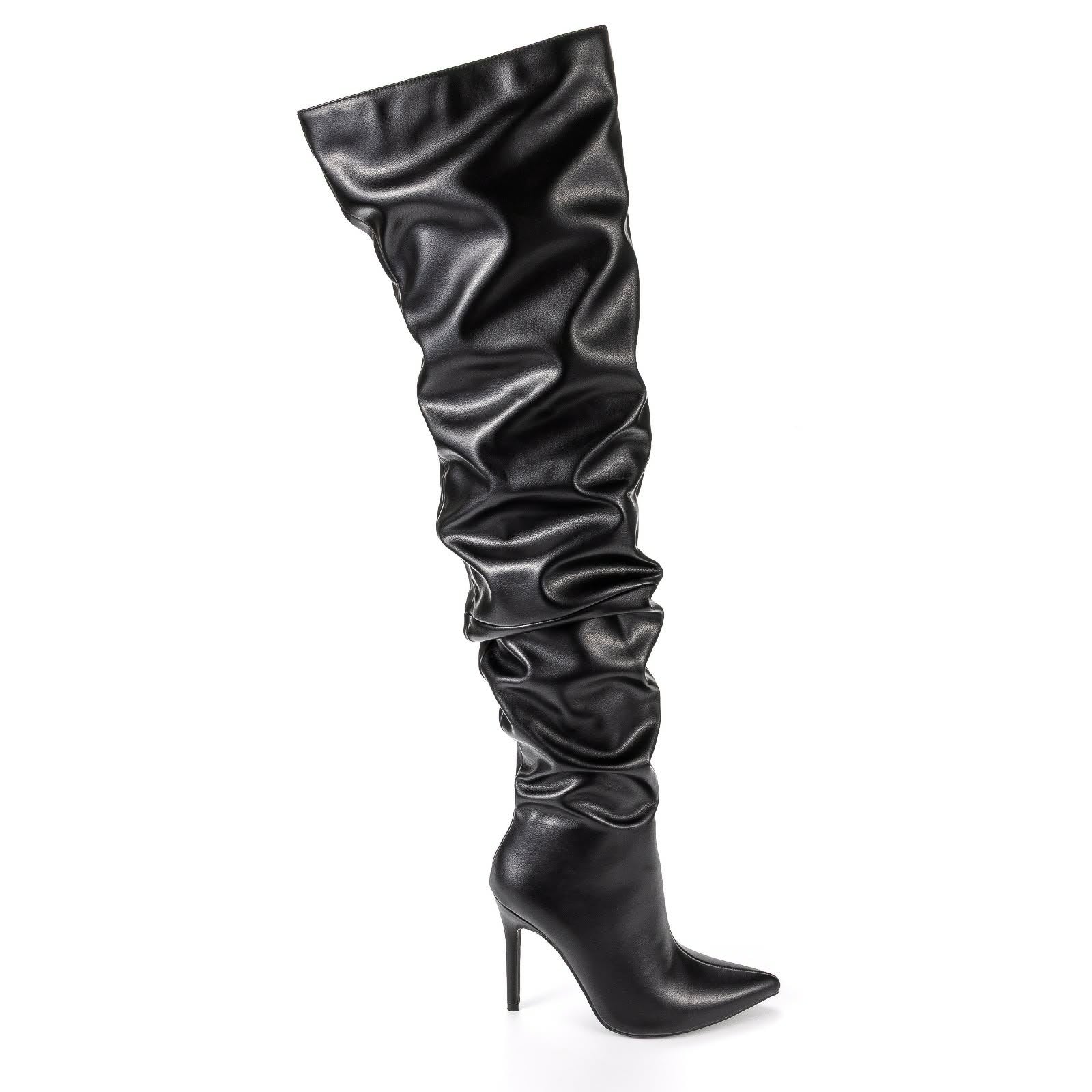 Taal boot heelThe tall boot, with a striking black color and a comfortable heel, is the perfect addition to any wardrobe. Its sleek design and sturdy heel provide both style and support, making it a versatile choice for any occasion. Elevate your fashion game with this must-have boot.